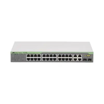 Switch ALLIED TELESIS WebSmart de 24 puertos 10/100 mbps 2 puertos 10/100/1000 Mbps 2 SFP Gigabit Combo. AT-FS750/28-10. –